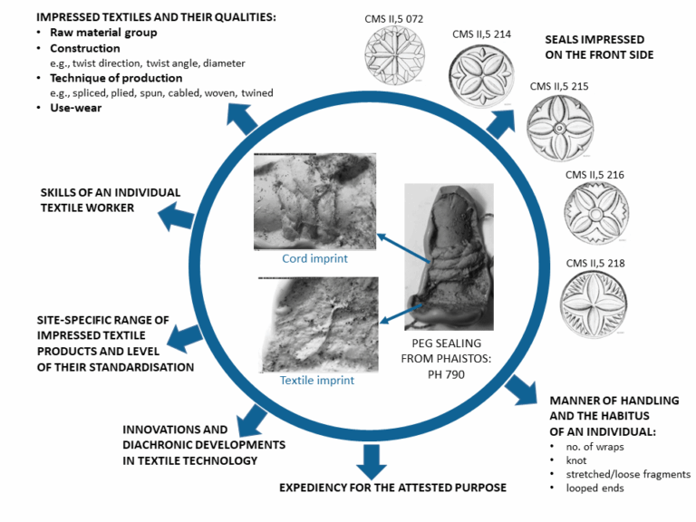 2) Bronze Age textile imprints from Aegean clay sealings from the Corpus der minoischen und mykenischen Siegel (CMS) Archive in Heidelberg.